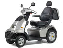 Unparalleled comfort and features for serious scooter users. The Afiscooter S4 is winner of the prestigious Red Dot Design Award. It offers an impressive driving range, an ergonomic design for a noticeably more comfortable ride, a programmable electronic controller, LCD control screen and LED headlights. Furthermore, the Afiscooter S4 has a fully adjustable tiller, full suspension and a shock absorbing steel frame. The four-wheel suspension and steering systems provide a pleasurable car-like driving experience for long distances. Available in silver, blue and dark grey. Images show colour options as well as unique hardtop canopy options.