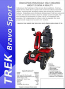 This is the Trek Bravo Sport mobility scooter. The new and improved version of Trek's best-selling mobility scooter. The Bravo Sport comes with a new, modern style, an upgraded, ergonomically designed seat, an LCD display, a new 8amp fast charger, and a lockable storage box.